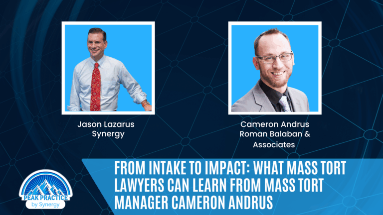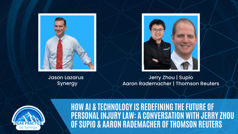 Peak Practice is a community that delivers expert industry insights on how to scale, streamline, and accelerate personal injury law practices. By providing knowledge and resources on law firm operations, marketing, and business growth, Peak helps personal injury attorneys gain a competitive edge. As the leader in lien resolution, Synergy partners with firms to eliminate settlement bottlenecks, optimize client outcomes, and drive greater profitability—so you can focus on securing justice. Join the community here and discover how partnering with Synergy helps you achieve Peak Practice.