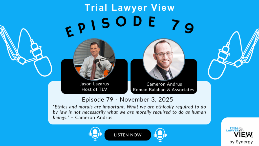 Trial Lawyer View, the go-to podcast for personal injury trial lawyers. Hosted by Jason D. Lazarus, a renowned attorney expert to fellow lawyers and author of The Art of Settlement & Litigation to Life. The podcast explores cutting-edge topics in personal injury law, covering best practices, firm growth strategies, and ways to accelerate success. As part of Peak Practice by Synergy, a community dedicated to helping to optimize personal injury practices, the podcast also delves into firm operations, marketing, technology, and more.