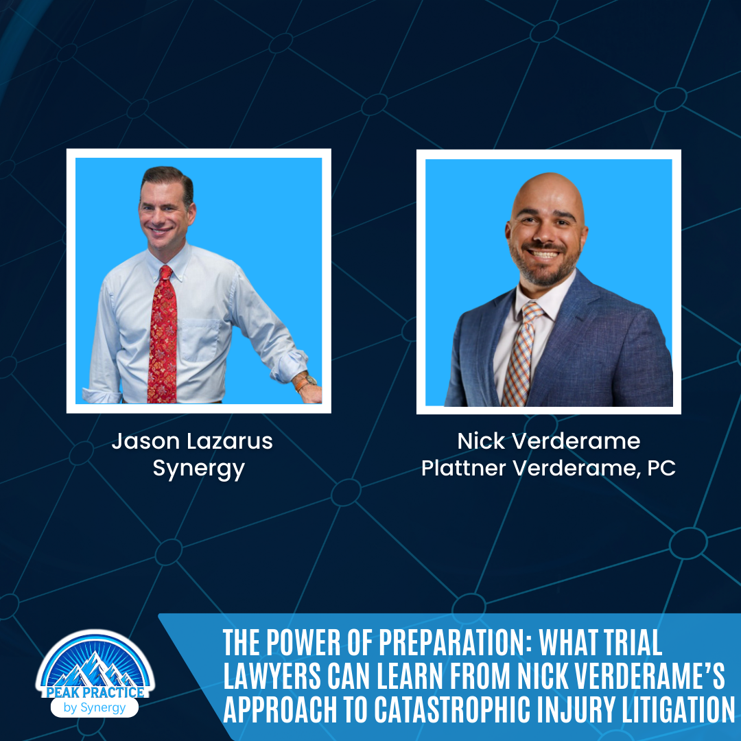 In our conversation on Trial Lawyer View by Synergy podcast, we dug into how he built a high-volume personal injury and workers’ compensation firm while keeping a culture that treats clients like family. For innovative trial lawyers who want to grow without giving up craftsmanship, this playbook matters.