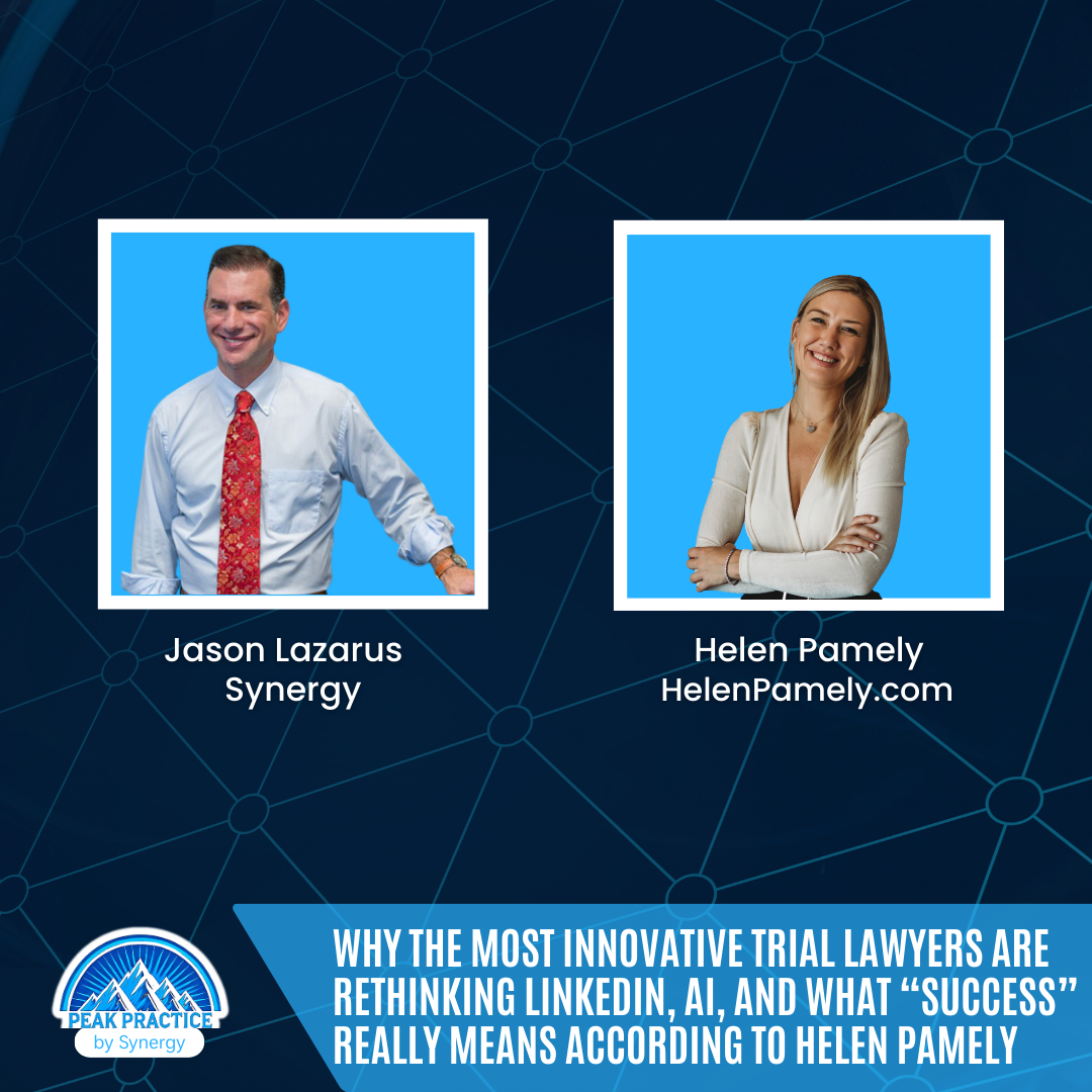 In a recent episode of the Trial Lawyer View by Synergy podcast, I sat down with Helen Pamely of Helen & Holly (The LinkedIn Academy For Lawyers) and The Lawyers’ Coach and Rodd Santomauro of synergy. to talk about something that is quietly reshaping the legal profession: how lawyers and law firms show up in public, how technology is changing the work we do, and why success in law is being redefined in real time.